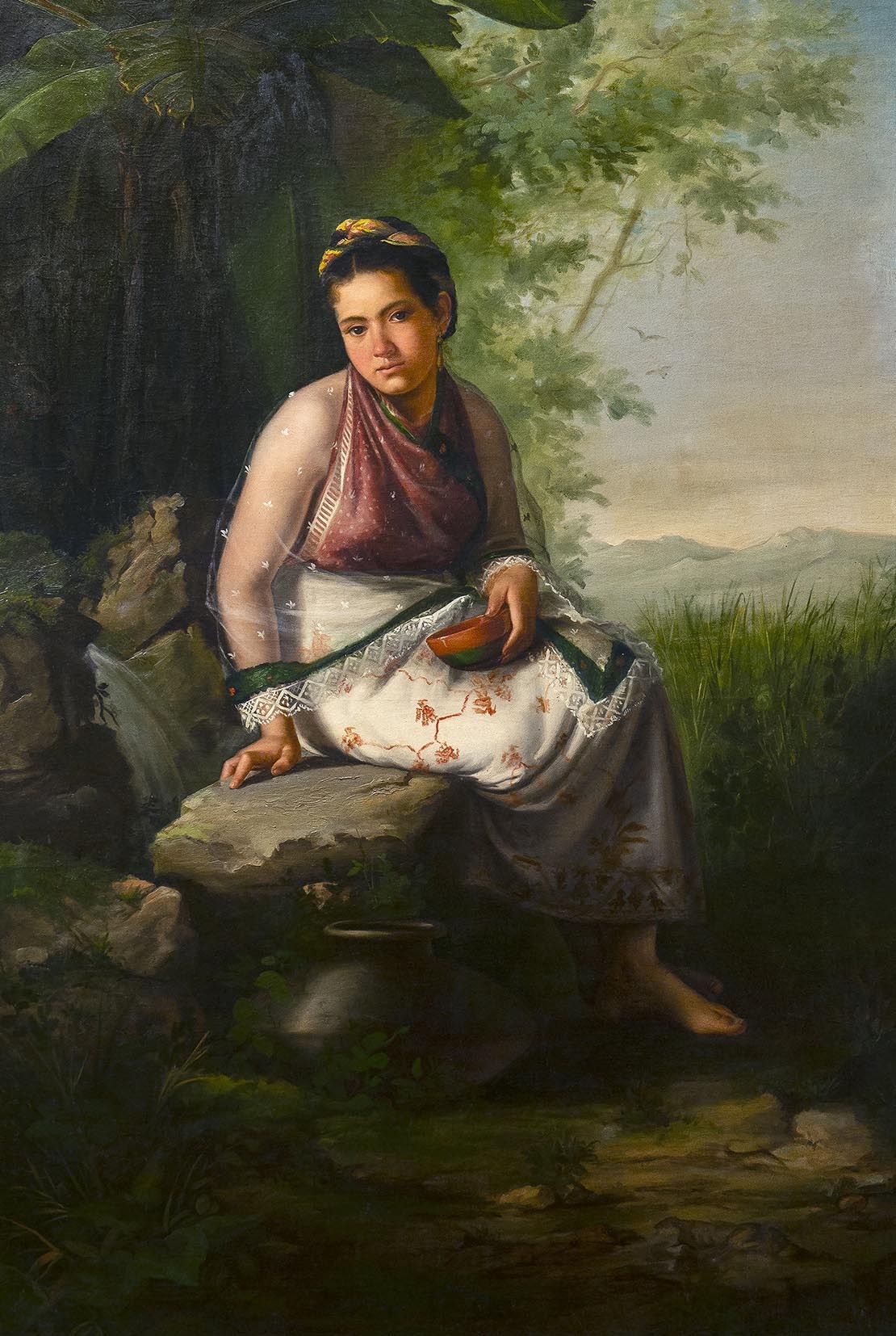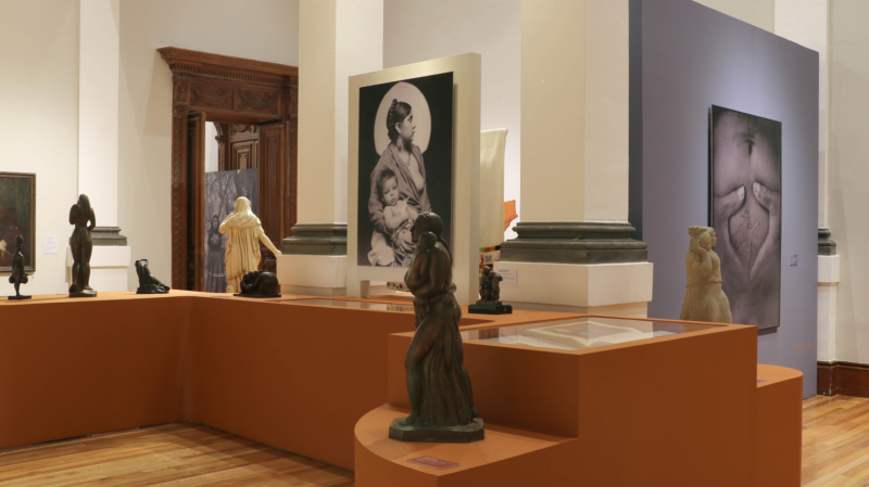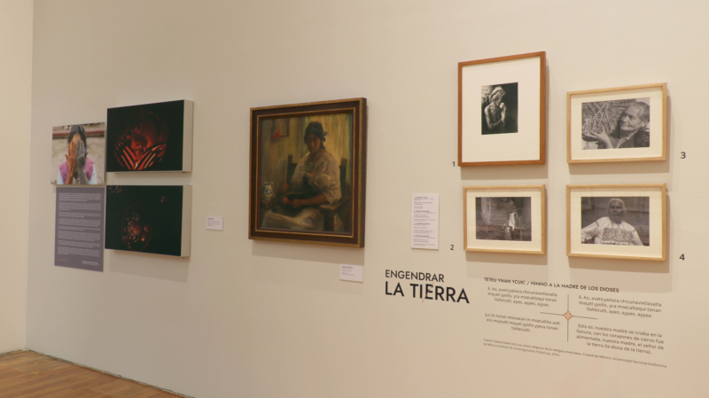 A través de cuatro temáticas constantes en las representaciones visuales sobre la “mujer indígena”, esta muestra reconstruye las retóricas sobre lo indígena, en clave femenina, y sus transformaciones en el tiempo. El primer núcleo del recorrido se titula «Reimaginar un origen» y se cuestiona sobre la relación entre “mujer indígena” y la noción de origen cultural, es decir, lo que se concibe como las raíces que conectan con el pasado y la tradición. Al fungir como germen, el cuerpo indígena femenino se asocia al territorio y la naturaleza desbordada; un terreno fértil que también es objeto de dominio y despojo. En estrecha relación con ello, se encuentra el segundo núcleo: «Engendrar la tierra», que explora la maternidad y las distintas expresiones de cuidado o ternura, vinculadas a la capacidad de engendrar y reproducir la vida, incluso en casos que van más allá de tener hijos. De este modo, la relación entre indigenidad y maternidad permite indagar sobre las imágenes, expectativas, deseos y los objetos que nutren ese caudal de afectos y prácticas.
